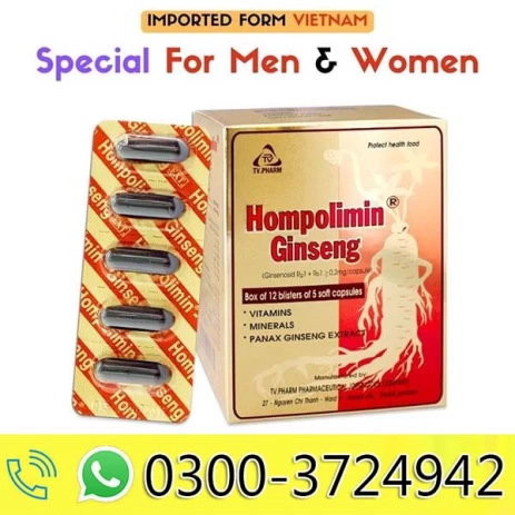 Hompolimin ginseng Multivitamin Capsules in Pakistan is a type of ginseng that is commonly used in traditional Chinese medicine. It is believed to have a wide range of health benefits, including improving cognitive function, reducing stress and anxiety, and boosting the immune system. However, more research is needed to fully understand its effects and potential side effects. As with any supplement or herb, it is important to speak with a healthcare provider before use.